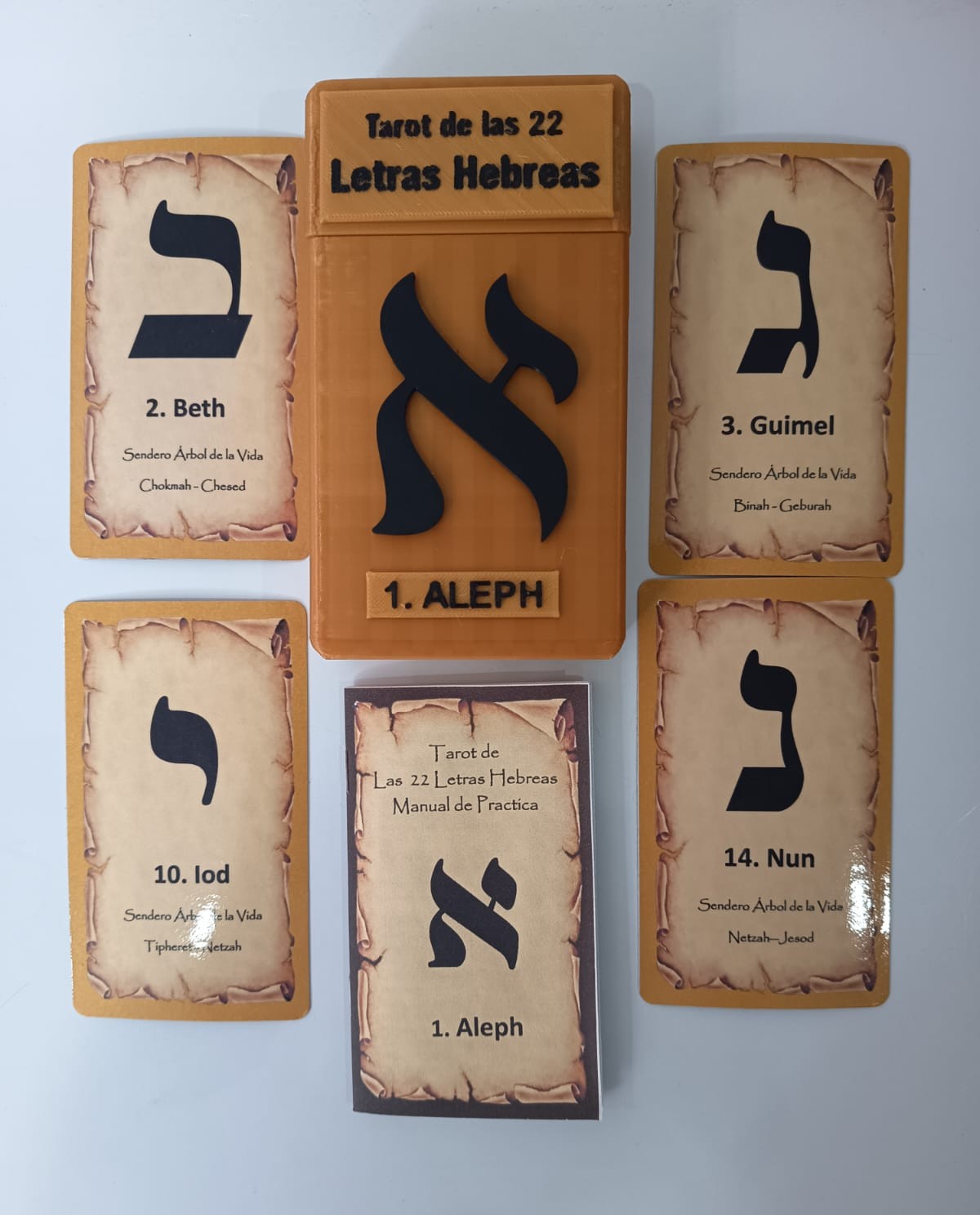 Cartas 22 Letras HebreasPrecio de venta: $100.000 Incluye 22 letras hebreas + estuche en pasta dura. Tiene manual para que sirve cada letra hebrea.